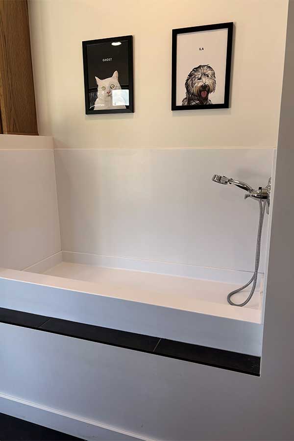 Pre-cut panels make installation quick and simple, without the need for special tools. Fabricated in the USA to exacting standards, your pet bath will provide a beautiful, practical solution for years to come, whether in residential or commercial settings.